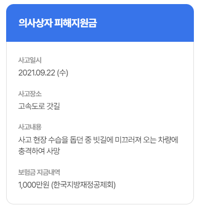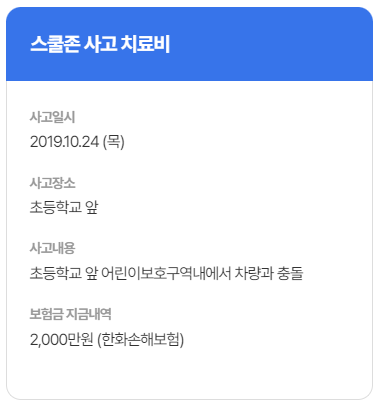 스쿨존 내 교통사고로 인한 부상 치료비 지원.
