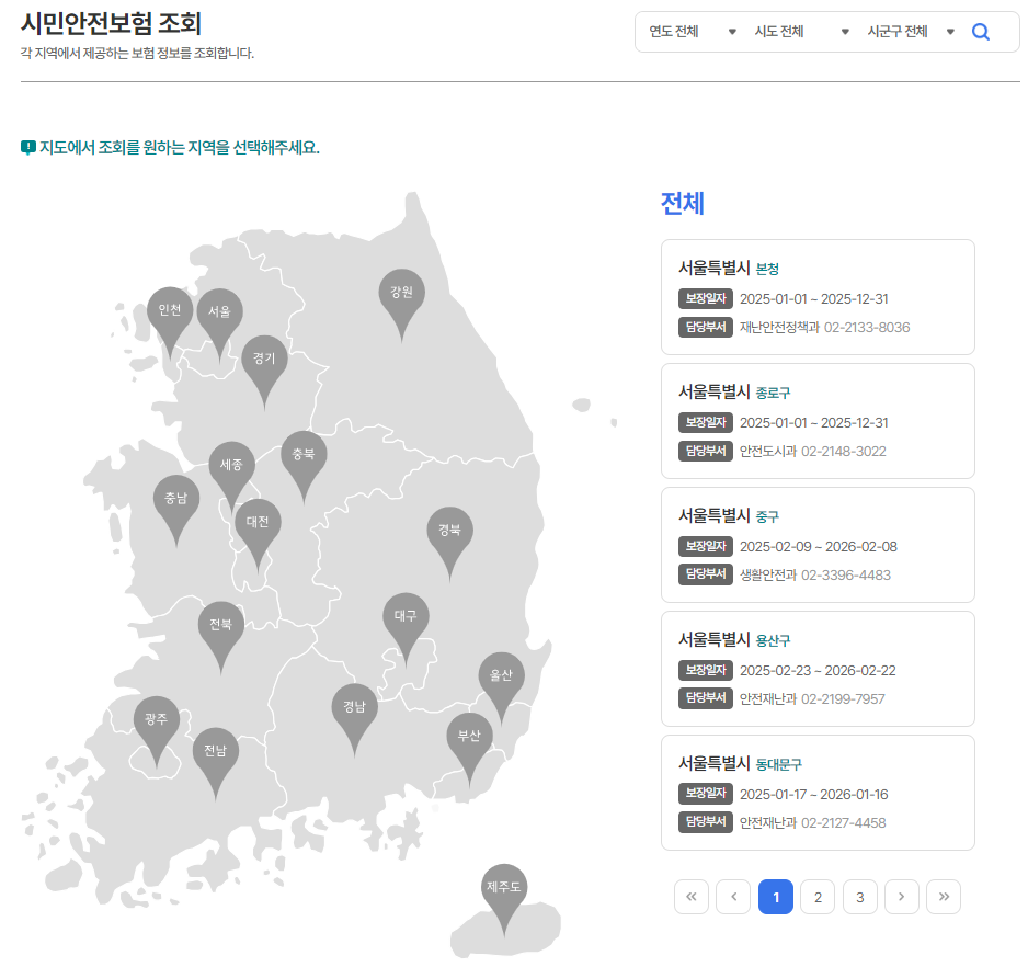 본인이 거주하는 지역의 시민안전보험 가입 여부는 아래 링크를 통해 확인하실 수 있습니다.