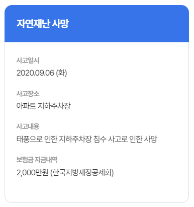 태풍, 홍수, 지진 등 자연재해로 인한 사망 시 보상.