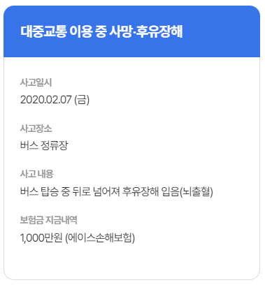 📌 대중교통 이용 중 상해 사망 및 후유장해